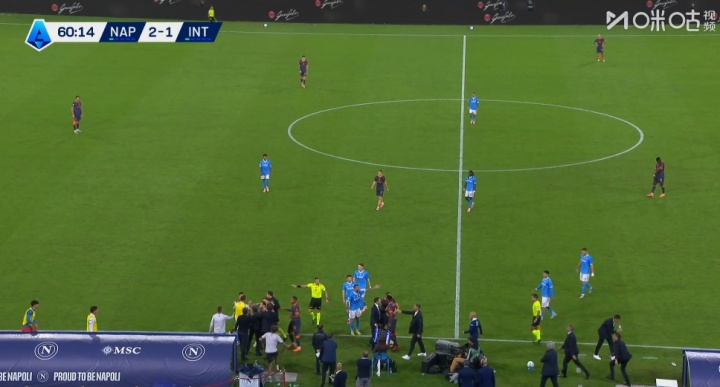 10月26日讯 国米vs那不勒斯第61分钟,劳塔罗与孔蒂场边爆发打破,这下劳塔罗没吃牌,孔蒂染黄了!被拉开后,劳塔罗还在隔空打手式,孔蒂则嘴上没停过!