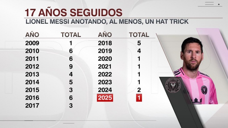 据ESPN统计,这是梅西本年的首个帽子戏法,他赓续17年在比赛中戴帽。