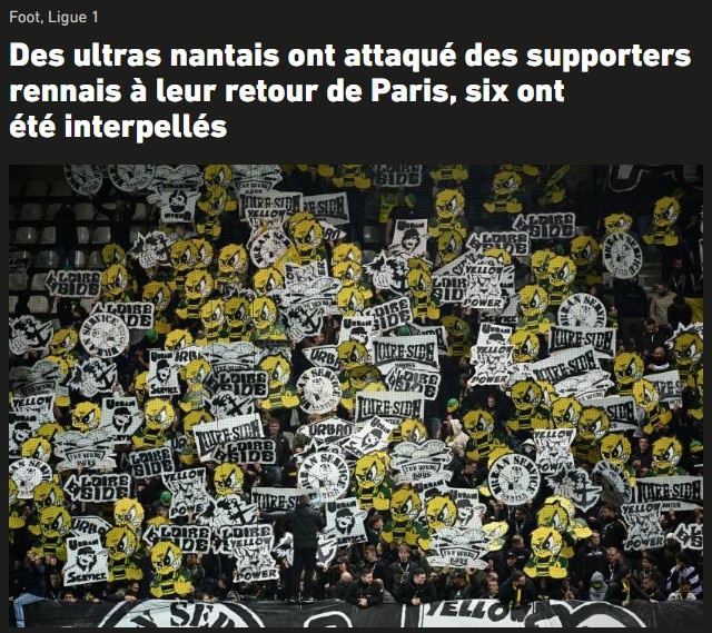 四月南特输给雷恩后,雷恩球迷曾在南特发动过访佛突破。