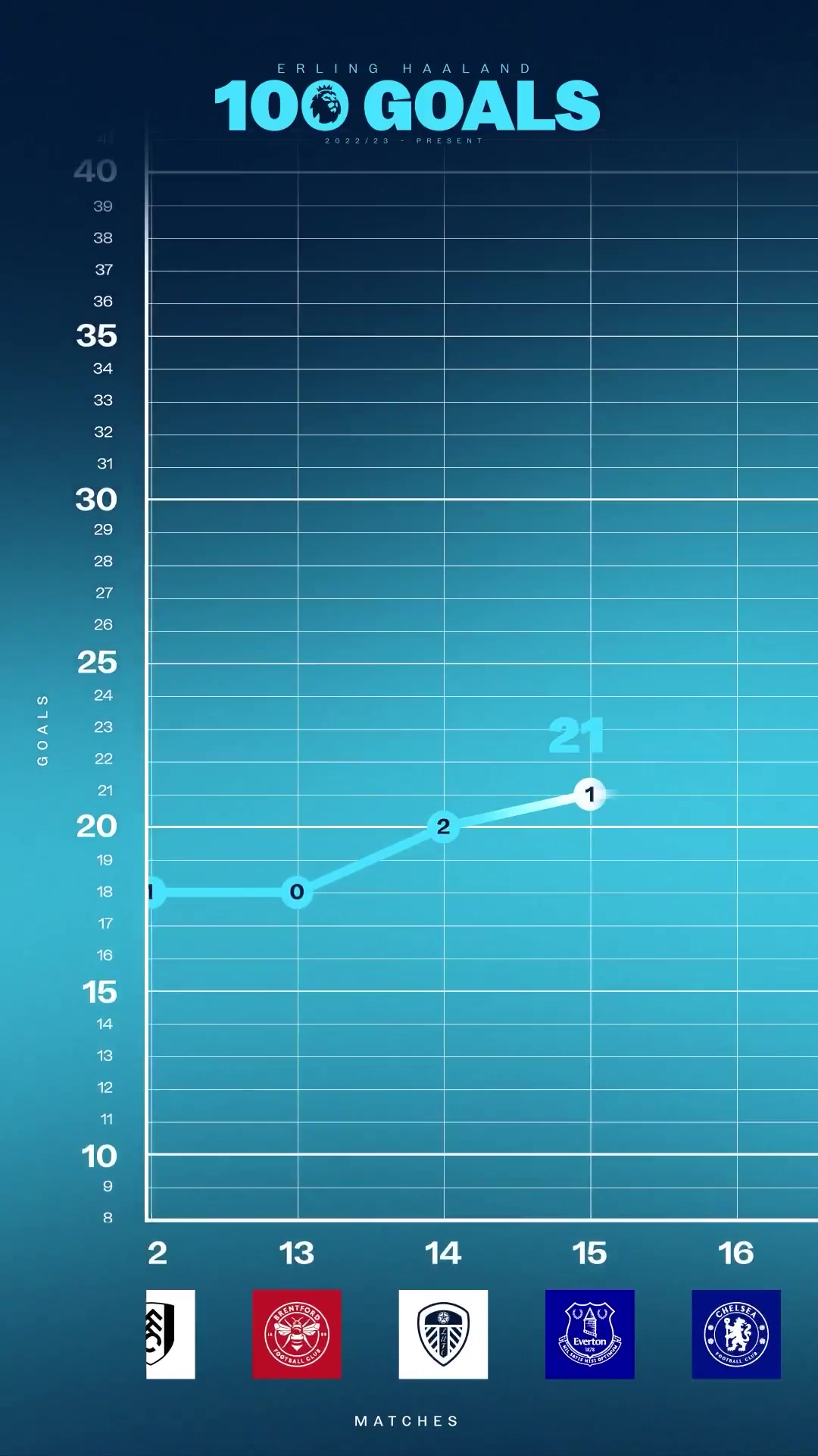 收尾百球里程碑!曼城官方社媒晒哈兰德英超进球弧线