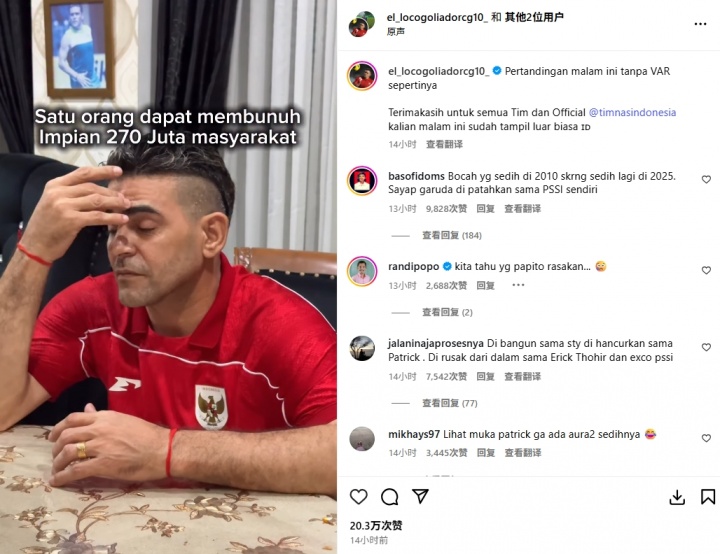 无缘2026寰宇杯!前印尼国脚品评马宁:1东说念主就能构陷2.7亿东说念主的梦念念