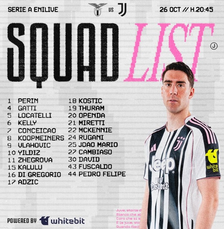 10月25日讯 本轮意甲尤文将迎战拉都奥,球队官方也公布了本场比赛大名单,具体如下: