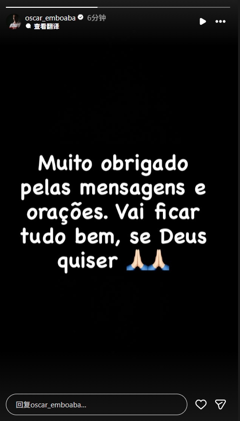 11月12日讯 在本日腹黑出现很是送医后,奥斯卡首度更新社媒:终点感谢您的留言与祷告。若天主快活,一切自会好转🙏🙏