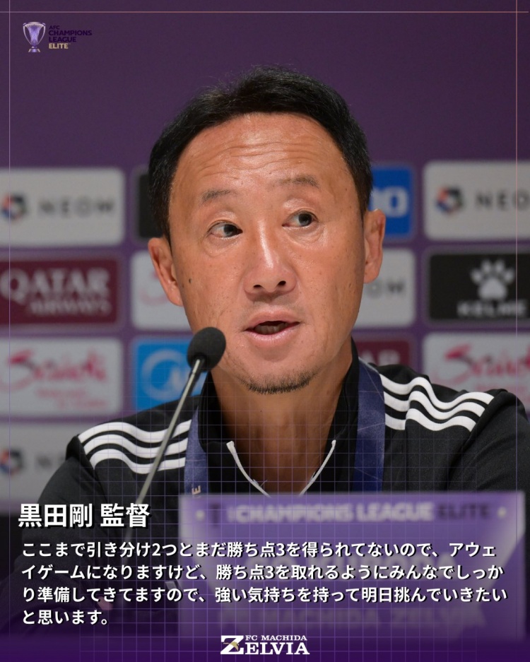 10月20日讯 亚冠精英联赛东亚区第3轮,町田泽维亚客场对阵上海海港。赛前,町田泽维亚主帅黑田刚和球员相马勇纪接管了采访。