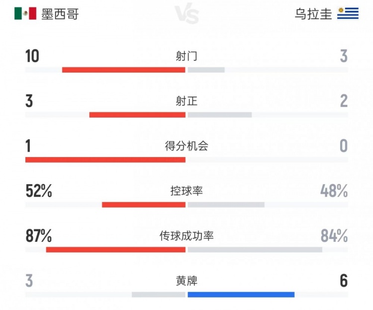 此役墨西哥射门10比3占据上风,不外两队王人莫得赢得进球,最终0-0持手言和。