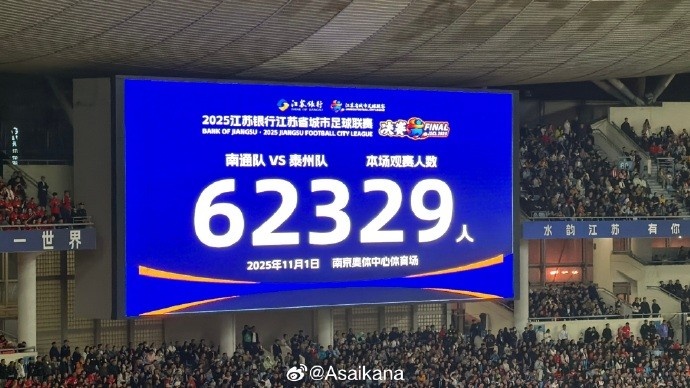 今年度工作联赛最高不雅世东谈主数为中超收官战大连英博vs上海海港的62330东谈主,而业余联赛最高不雅世东谈主数为苏超决赛南通队vs泰州队的62329东谈主,刚巧进出1东谈主。