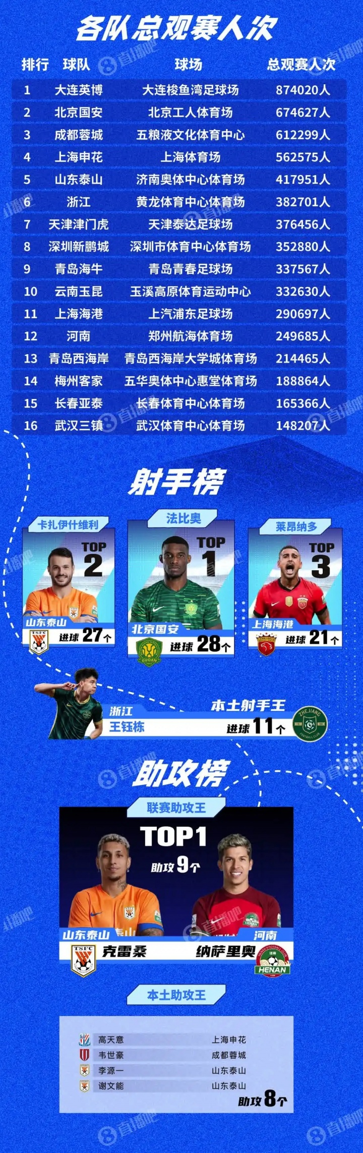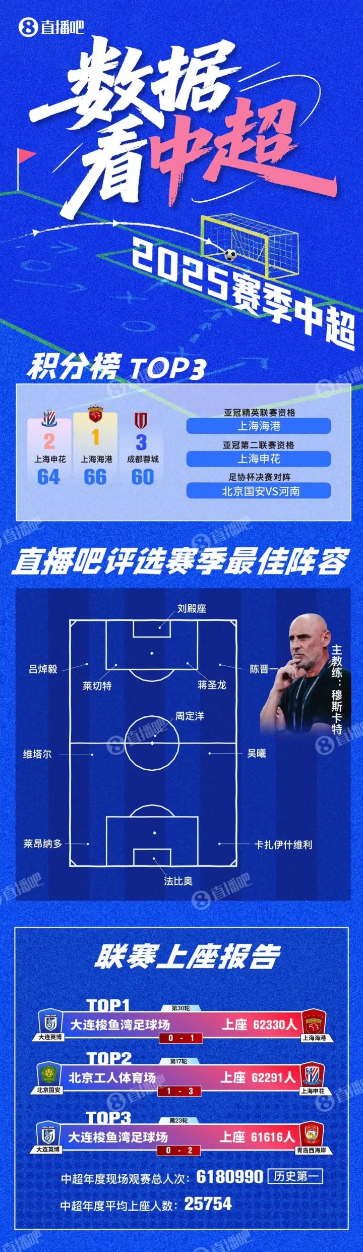 2025赛季中超联赛收尾。一个创造了上座率历史记载的赛季事后,作念了一份数据追忆。这份追忆很挑升想,不妨作念一番解读。