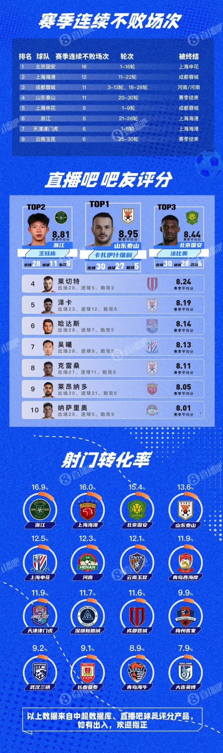 吧友投票选出的最好威望照旧相比巨擘,毕竟是国内最大的足球资讯平台。11东谈主威望里大无数位置齐莫得争议,但个别位置值得照看,比如守门员刘殿座的矫健性似乎不如颜骏凌,中后卫蒋光太对比赛的影响力对比蒋圣龙应该也不差。最可惜弗成入围的是海港爆点加布里埃尔、蓉城头子费利佩。这两东谈主诚然数据莫得前边三个那么好,但影响比赛的能力并不失神,在计谋层面,几乎莫得可替代性。