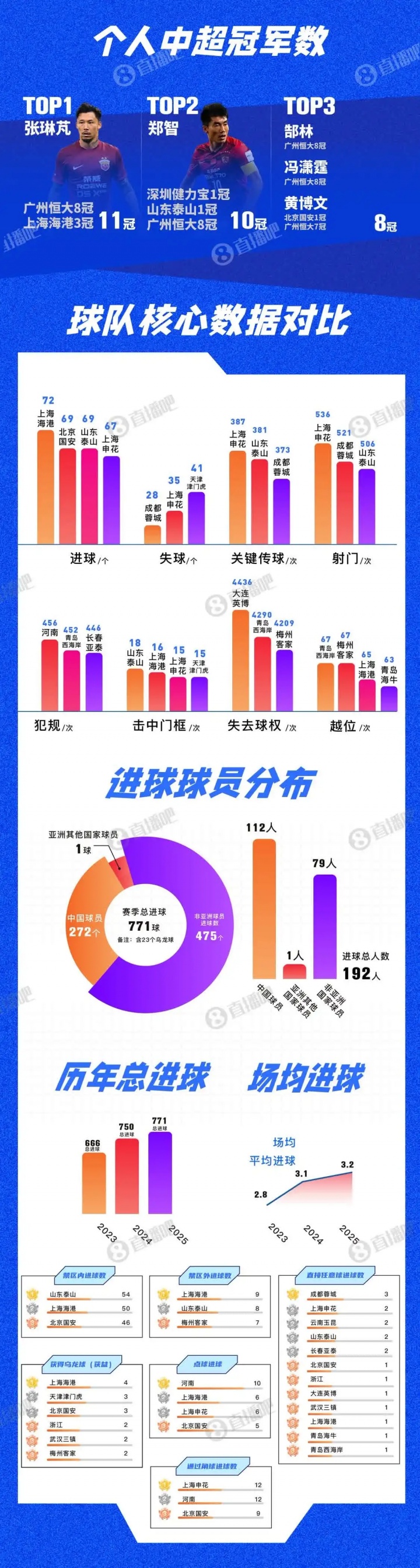 海港这波三连冠,张琳芃齐拿全了,这意味着他已经拿了11个联赛冠军,高出郑智成为中超冠军数目最多的球员。将来很长一段工夫里,不可能有东谈主能刷新这个数据,除了下赛季的他我方。动作发奋地、奇迹地、矜重地踢球的中国球员的代表,这11个冠军数据是天谈酬勤最好的注解。若是当年恒大放张琳芃留洋了?莫得若是。还好张琳芃比绝大无数中国球员齐幸福。