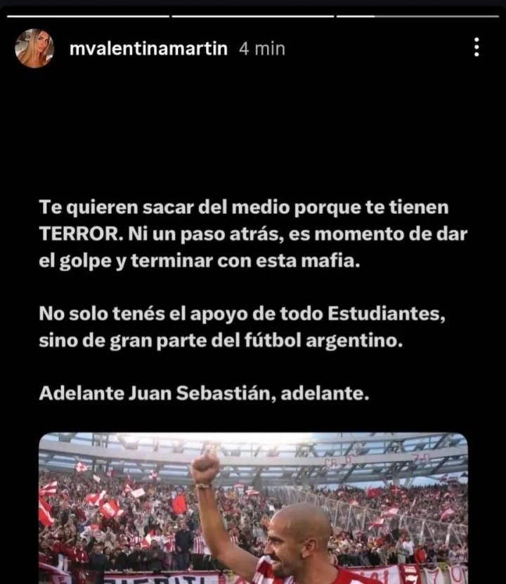 11月28日讯 拉普拉塔大学生主席贝隆被阿根廷足协禁足半年,贝隆的妻子马丁在社媒发文怒喷阿根廷足协是黑手党,并顺带阴阳了梅西。