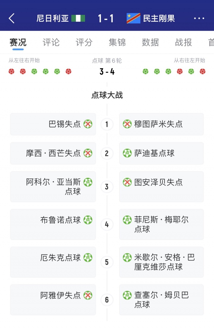 民主刚果第120分钟换门将!点球大战两次扑点,送尼日利亚出局