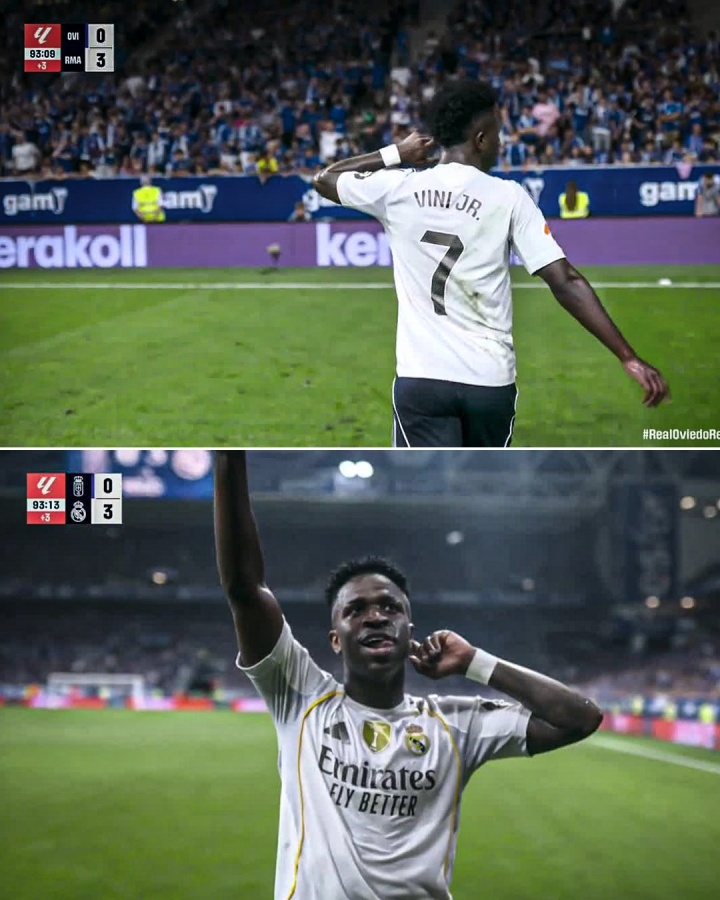 遭皇家奥维耶多球迷狂嘘!维尼修斯进球后指耳朵+指看台扞拒☝️